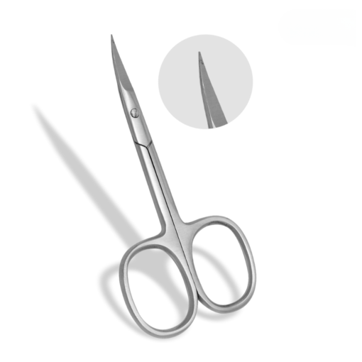 Slight Curved pointed blade. 3.5″ for facial and eyebrows. Can also be used for cuticles. Available in straight blade.